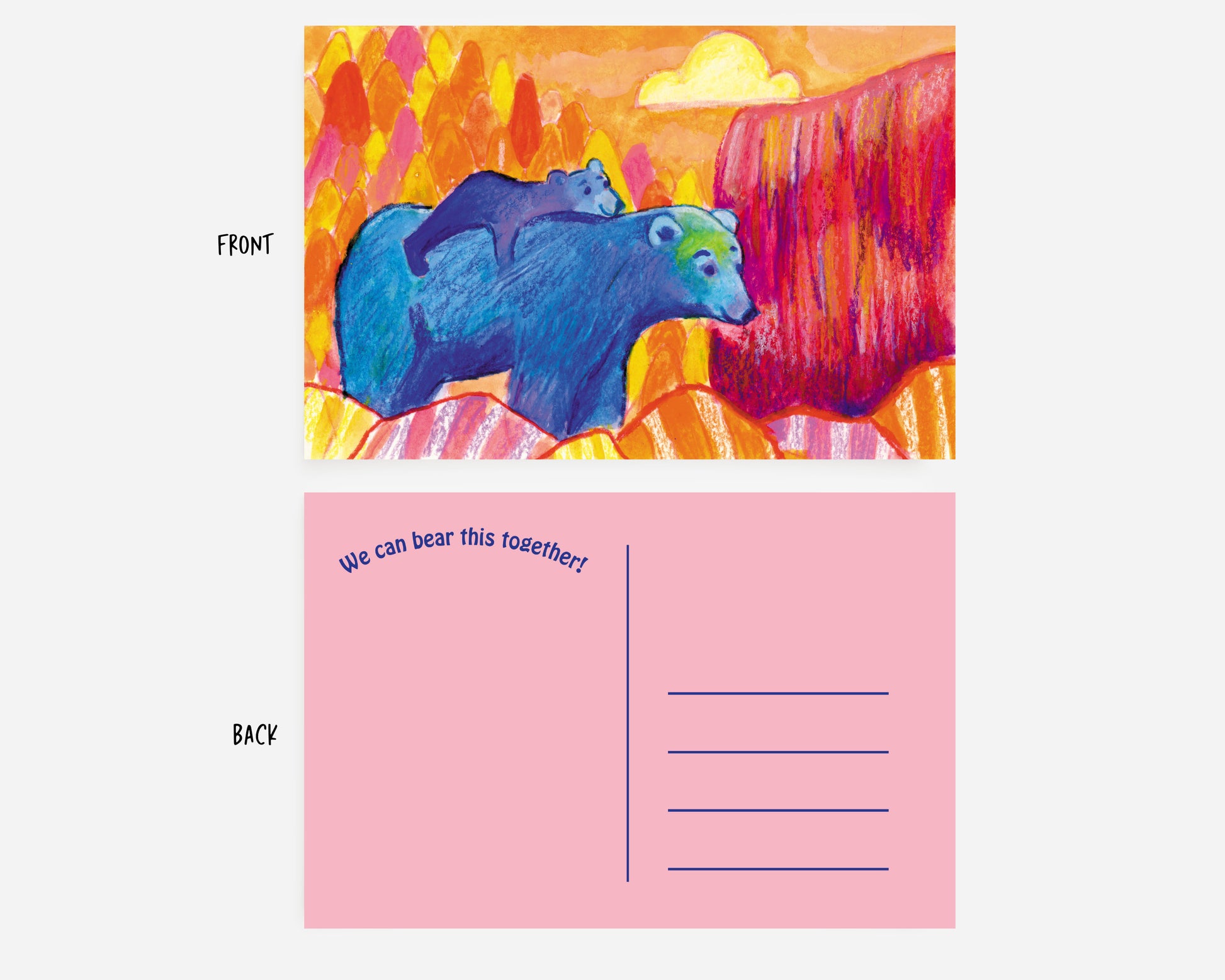 This whimsical postcard was a product of creating art during quarantine in 2020. Each card is double sided with a charming illustration on the front and a sentiment on the back. Perfect for sharing a smile, sending good vibes, or just brightening someone’s day.